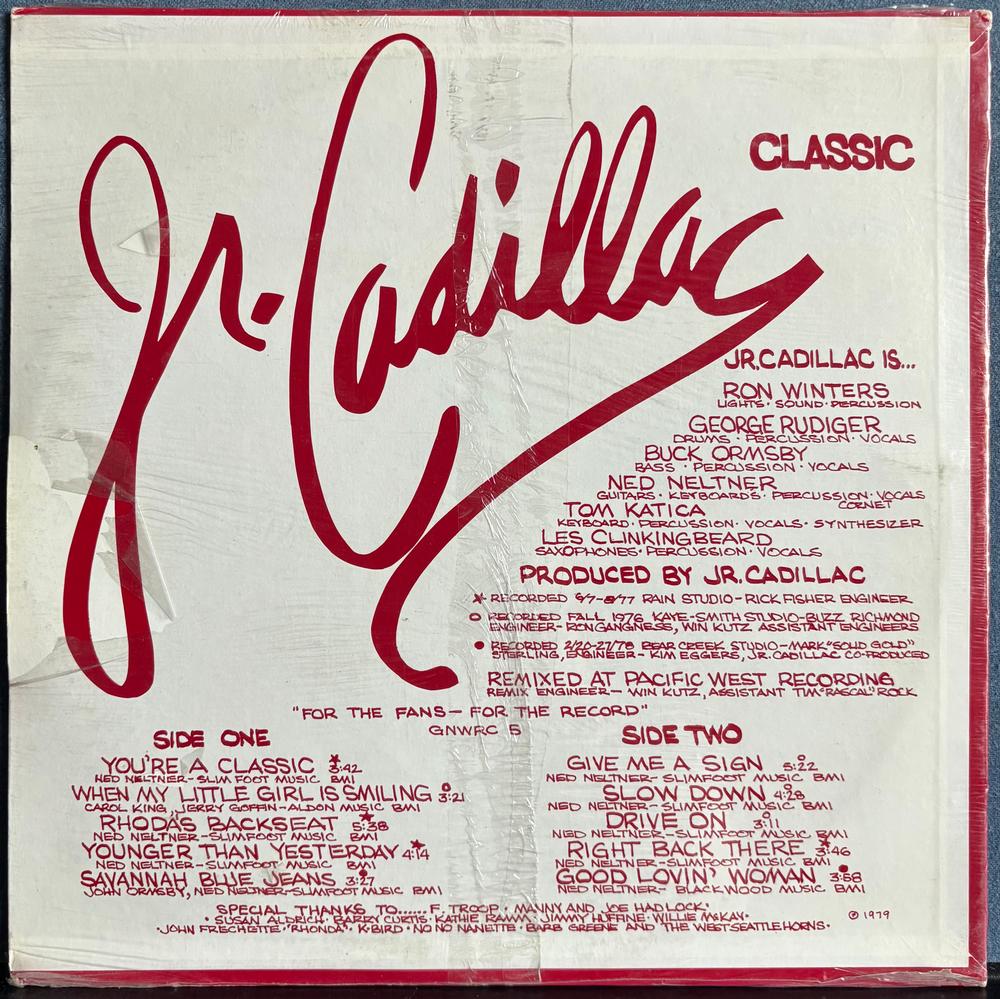 Seattle-based bar band Jr. Cadillac. SEALED original 1979 Great Northwest Record Company LP.